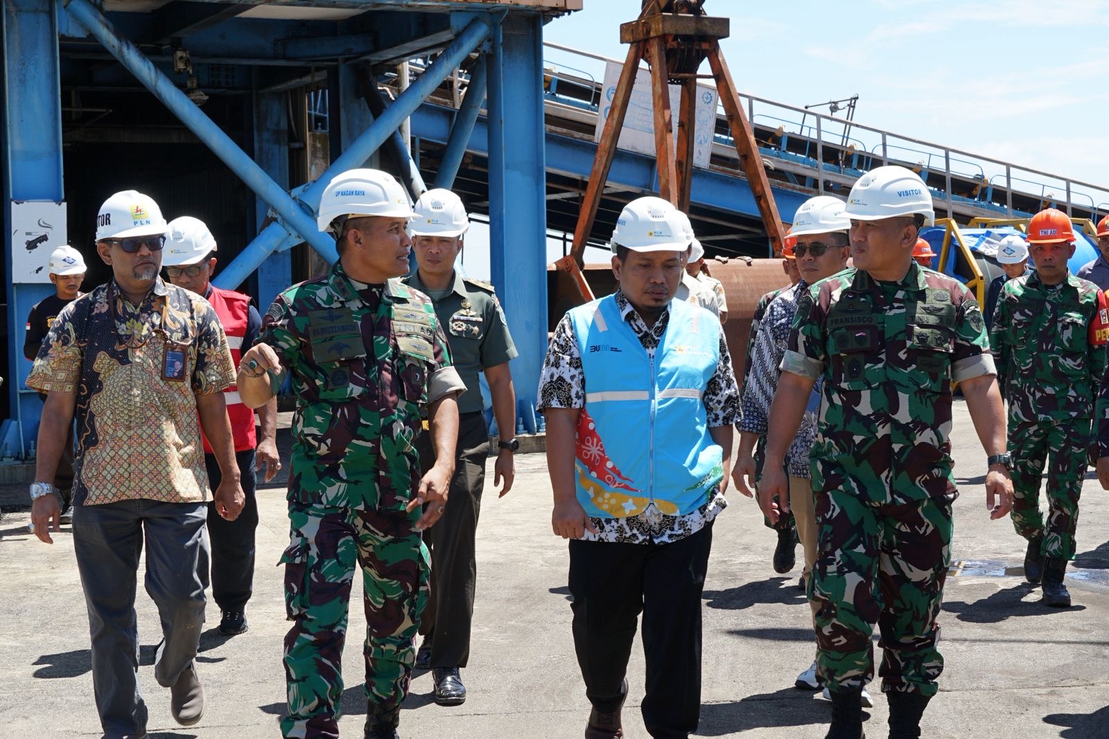 Rombongan kemudian menuju pelabuhan jetty Batubara untuk melihat langsung pelaksanaan pendampingan uji kualitas Batubara oleh personil Kodim.