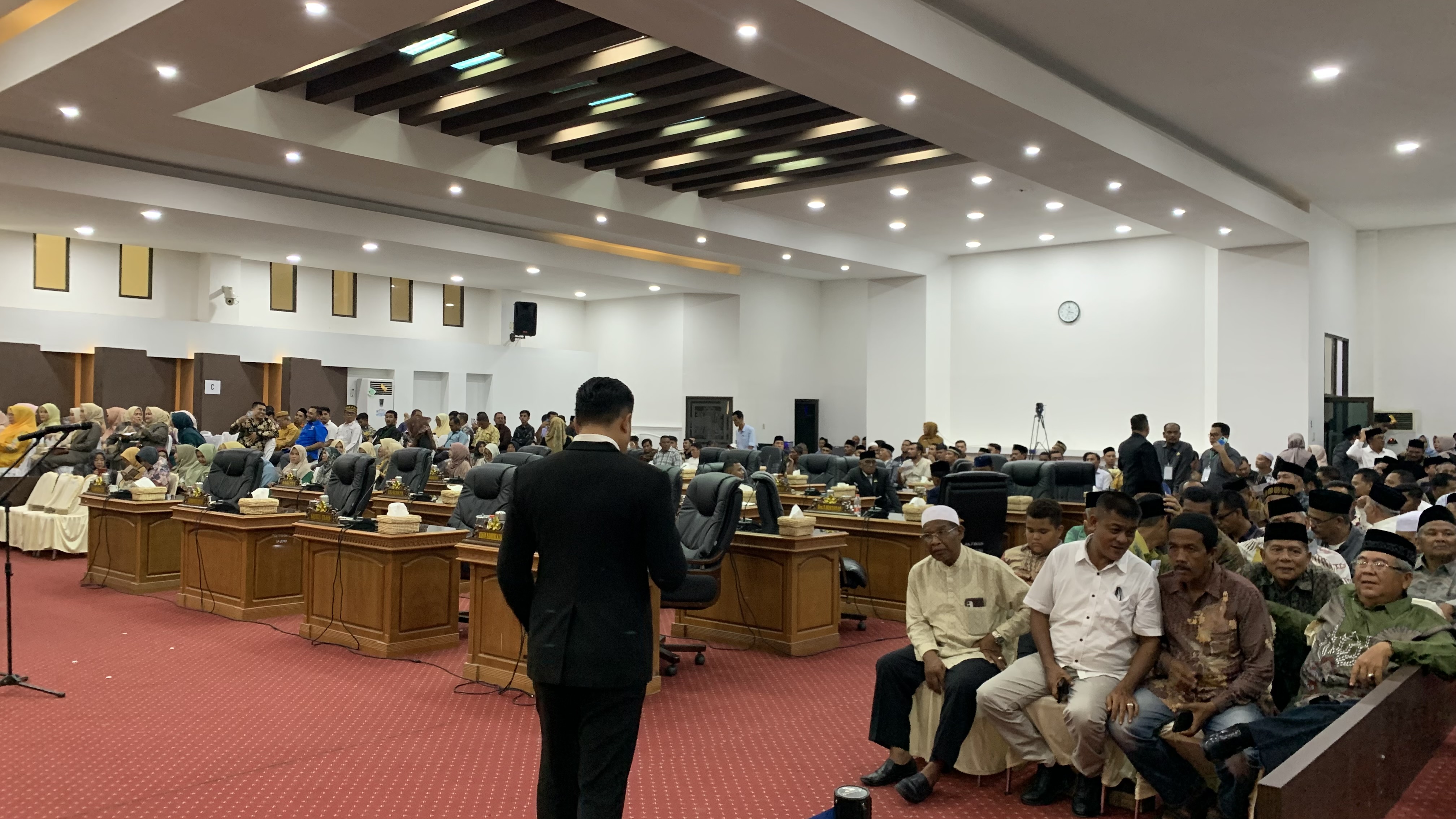 Sementara untuk para undangan forkompimda terlihat sebagian sudah berada di aula utama sedangkan yang lainya masih menunggu kedatangan Guburnur Aceh Muzakir Manaf.