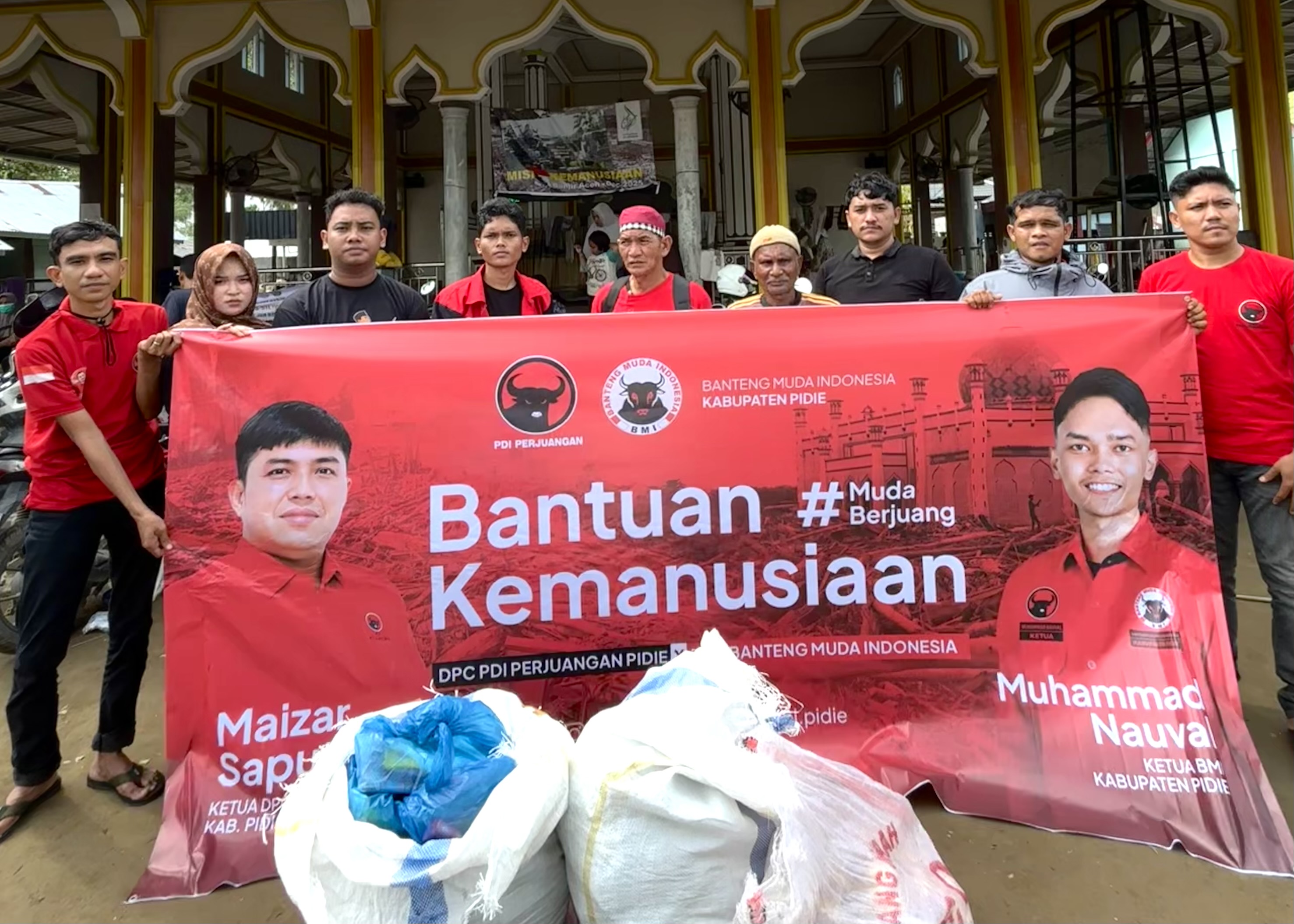 Kegiatan ini dipimpin langsung oleh Ketua DPC Banteng Muda Indonesia Kabupaten Pidie, Muhammad Nauval, bersama pengurus dan anggota BMI Pidie. Penyaluran bantuan tersebut turut dihadiri oleh perwakilan dari DPC PDI Perjuangan Kabupaten Pidie sebagai bentuk sinergi dan kepedulian terhadap masyarakat yang terdampak bencana.
