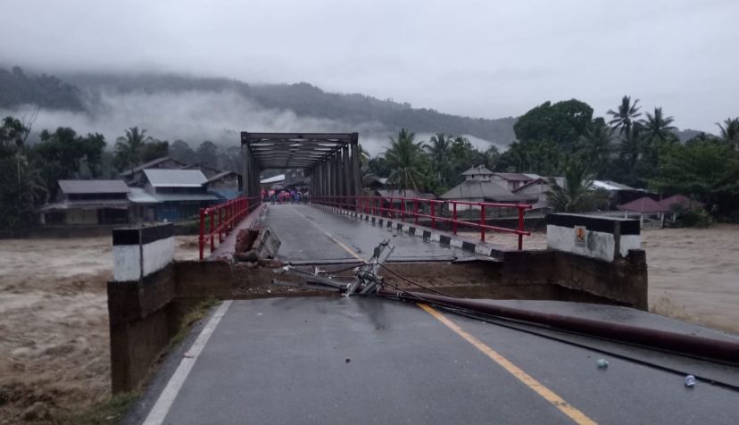 Nagan Raya, mjdnews.co - Sebuah jembatan di jalan lintas Provinsi penghubung antara pantai Barat Aceh menuju Aceh tengah tepatnya di Beutong Ateuh Banggalang putus total akibat di terjang banjir besar, Rabu (26/11/2025).