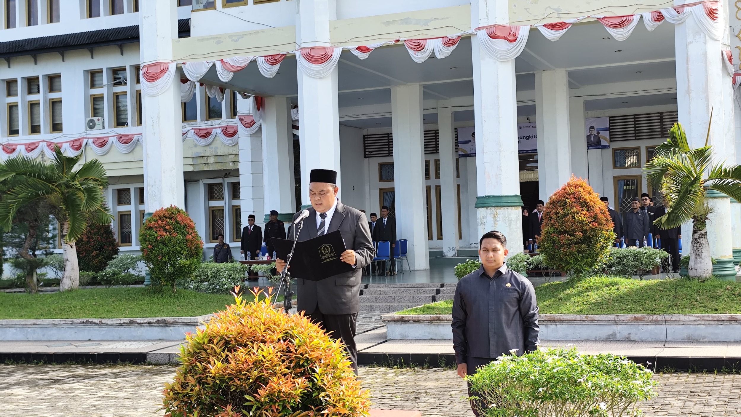 “Karena kami percaya, kebangkitan yang besar dibangun dari fondasi yang sederhana—kehidupan yang tenang, perut yang kenyang, dan hati yang lapang,” lanjut Sekda saat membacakan amanat.