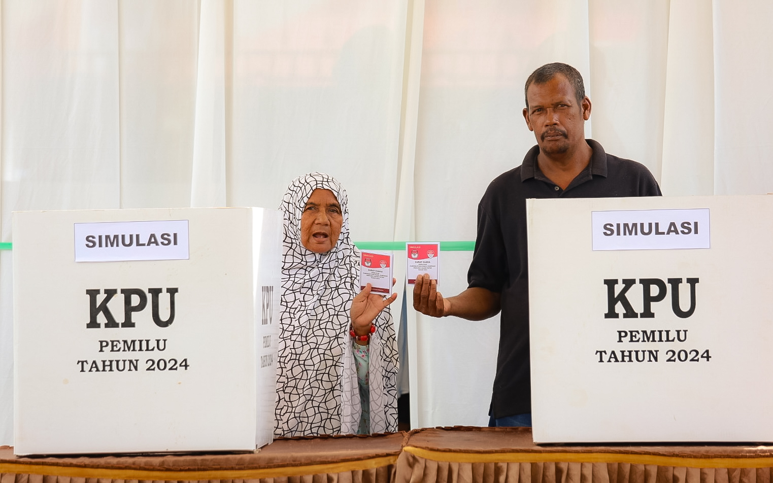 “Simulasi ini akan sama dengan hari pemungutan suara sebenarnya,maka simulasi ini tujuannya agar memberikan contoh kepada pemilih,” kata Adam Sani.